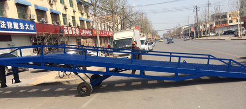 移動(dòng)式登車橋與叉車配合使用的貨物裝卸輔助設(shè)備,可根據(jù)汽車車廂的高低調(diào)節(jié)高度,叉車可以直接通過本設(shè)備駛?cè)胲噹麅?nèi)部進(jìn)行貨物的批量裝卸,僅需單人作業(yè),即可實(shí)現(xiàn)貨物的快速裝卸。它使企業(yè)減少大量勞力,提高工作效率,獲取更大經(jīng)濟(jì)效益。